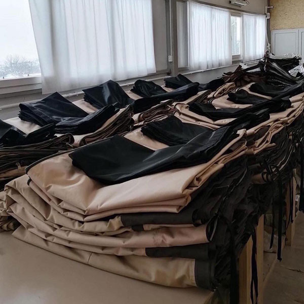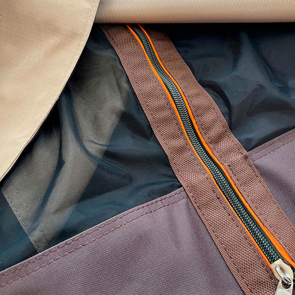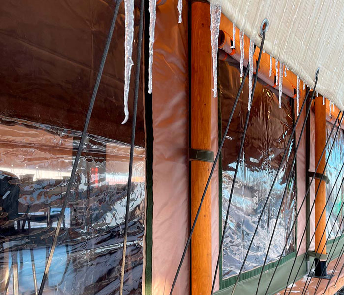 ЗИМНЯЯ ШУБА — выполнена из двухслойного и цельно сшитого текстиля с ветрозащитными клапанами с наполнителем из каландрированного синтепона, который обладает влагостойкими и бактерицидными свойствами в отличии от натурального наполнителя. Шуба полностью окутывает палатку и создаёт полный комфорт и уютную обстановку для пребывания гостей в зимний период, эффект юрты с естественной циркуляцией воздуха.