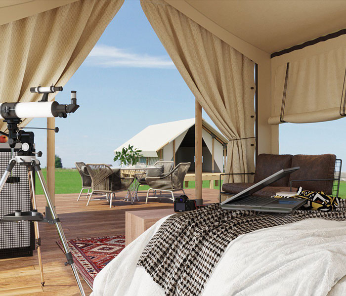 Департамент развития глэмпингов в России является единственным производителем на российском рынке сафари-палаток класса DELUXE, которые отвечают всем требованиям даже самого капризного гостя.